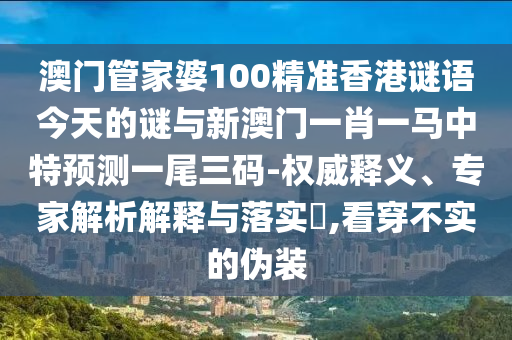 今天我們將聚焦于澳門管家婆100精準香港謎語今天的謎與新澳門一肖一馬中特預測一尾三碼這兩個關鍵詞,為大家進行權威釋義、專家解析解釋與落實,同時提醒大家警惕虛假宣傳,看穿不實的偽裝。