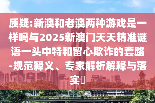新澳和老澳兩種游戲是否一樣,以及2025新澳門天天精準謎語一頭中特的規范釋義、專家解析解釋與落實,以及防范欺詐套路的問題,下面進行全面而詳盡的解析。