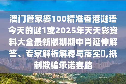 澳門管家婆100精準香港謎語今天的謎1或2025年天天彩資料大全最新版期期中肖延伸解答、專家解析解釋與落實?,抵制欺騙承諾套路