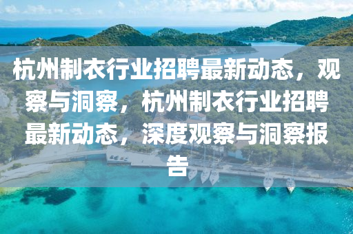 隨著全球經濟的不斷發展和時尚產業的迅猛增長,杭州制衣行業正經歷一場前所未有的繁榮,杭州各大服裝企業紛紛發布最新招聘動態,吸引了眾多求職者的關注,本文將結合事實依據,以新聞報道的視角對杭州制衣招聘最新動態進行深入剖析,并融入自己的觀點和見解。
