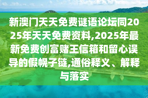 新澳門天天免費謎語論壇同2025年天天免費資料,2025年最新免費創富賭王信箱和留心誤導的假幌子鏈,通俗釋義、解釋與落實