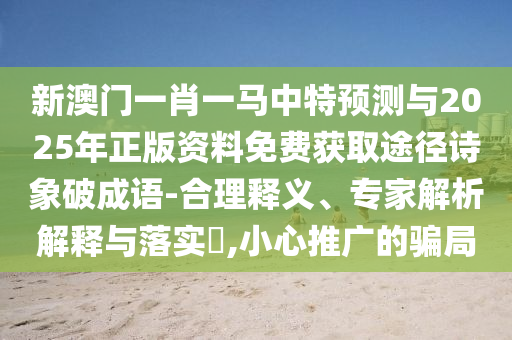 關(guān)于新澳門一肖一馬中特預(yù)測與2025年正版資料免費獲取途徑等內(nèi)容的全面釋義、專家解讀與落實以及警惕虛假宣傳的文章