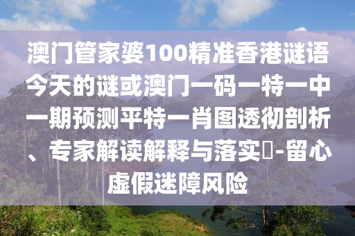 關(guān)于澳門(mén)管家婆100精準(zhǔn)香港謎語(yǔ)今天的謎等相關(guān)內(nèi)容的全面釋義、解釋與落實(shí),以及虛假宣傳的警示
