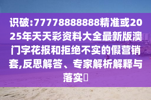 識破:77778888888精準或2025年天天彩資料大全最新版澳門字花報和拒絕不實的假營銷套,反思解答、專家解析解釋與落實?